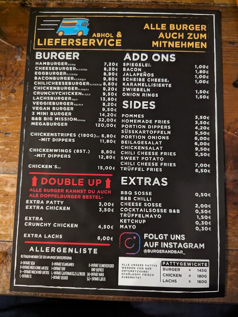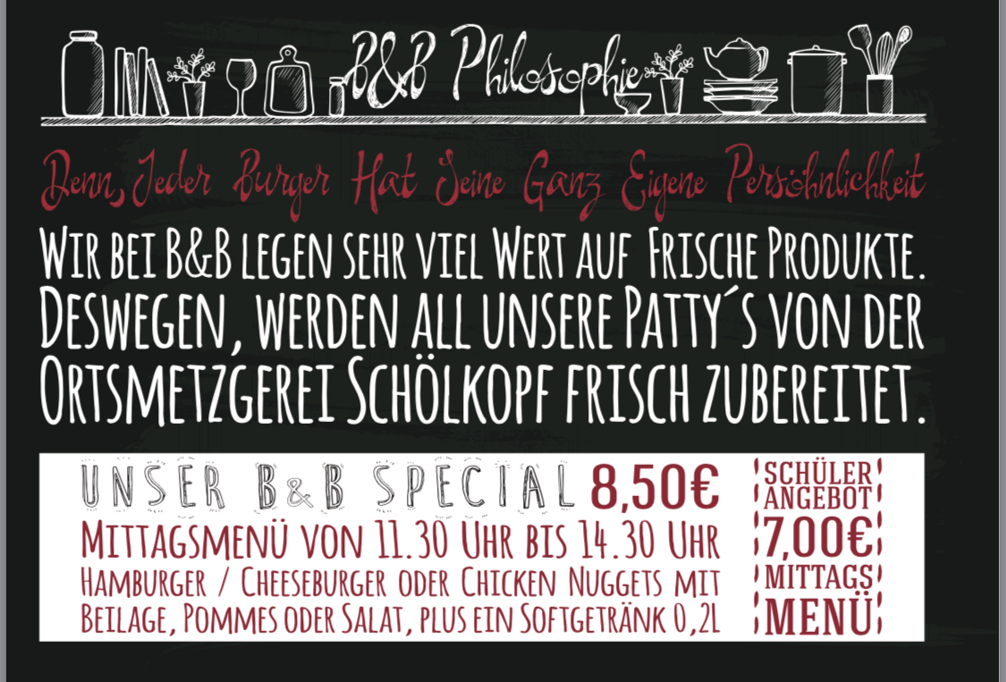 Welcome to B&B Burger Bar, a gem located at Hafnergasse 16 in Neckartenzlingen, Germany. This spot has quickly become renowned for serving some of the best burgers in the area. Customers rave about the juicy, perfectly crafted patties that boast an outstanding flavor profile.